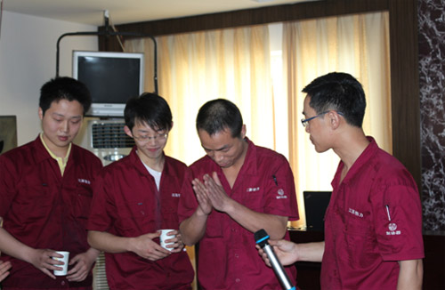 5月12日上午,在四樓會(huì)議室舉行了“一幫一”師徒結(jié)對(duì)儀式。現(xiàn)場有熱情的師傅,活潑的徒弟,經(jīng)雙方自愿選擇,相互握手,自主溝通, 倒水敬茶,完成了簡短的師徒結(jié)對(duì)儀式。