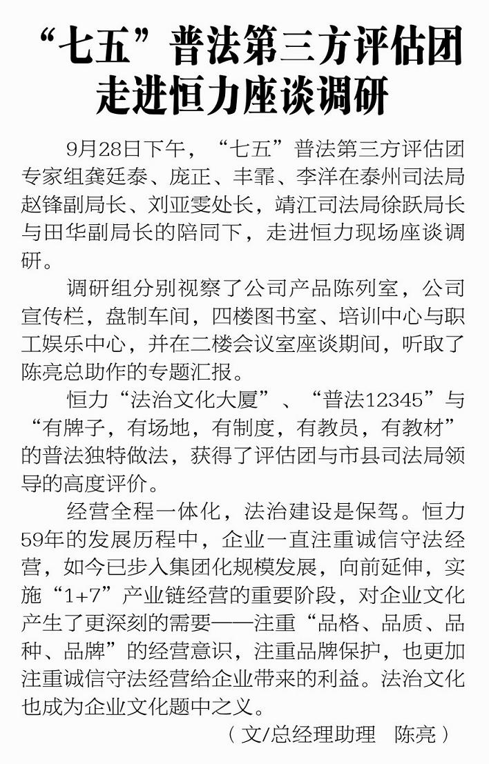 "七五"普法第三方評(píng)估團(tuán)走進(jìn)恒力座談?wù){(diào)研
